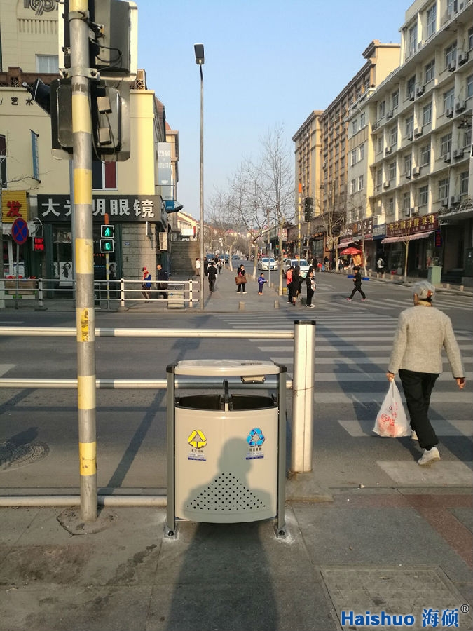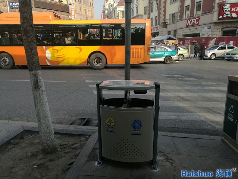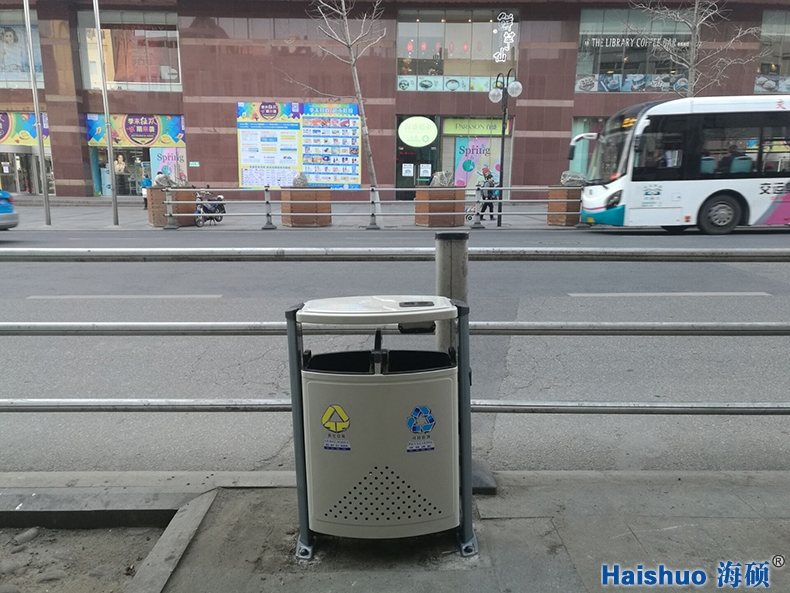 詳細(xì)說明:青島海碩鍍鋅板果皮箱HS-01是青島海碩環(huán)保設(shè)備有限公司為青島中山路安裝的分類果皮箱,材質(zhì)為鍍鋅板。果皮箱表面涂料均勻光滑,同時(shí)個(gè)性化設(shè)計(jì),使用方便、實(shí)用,美觀大方,適合小區(qū)、景區(qū)等戶外場(chǎng)所使用。