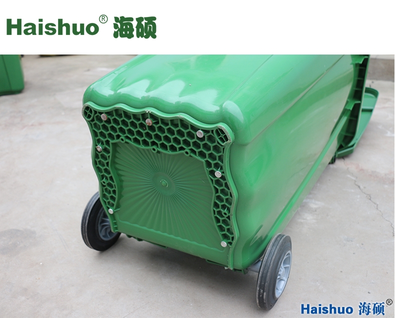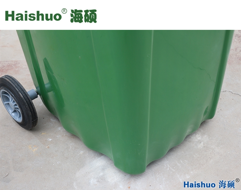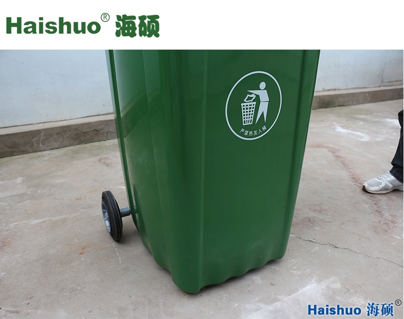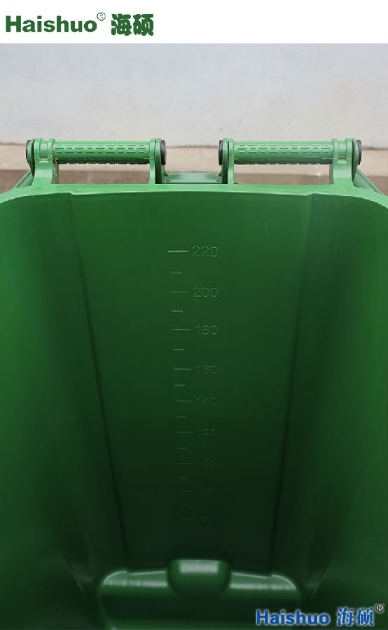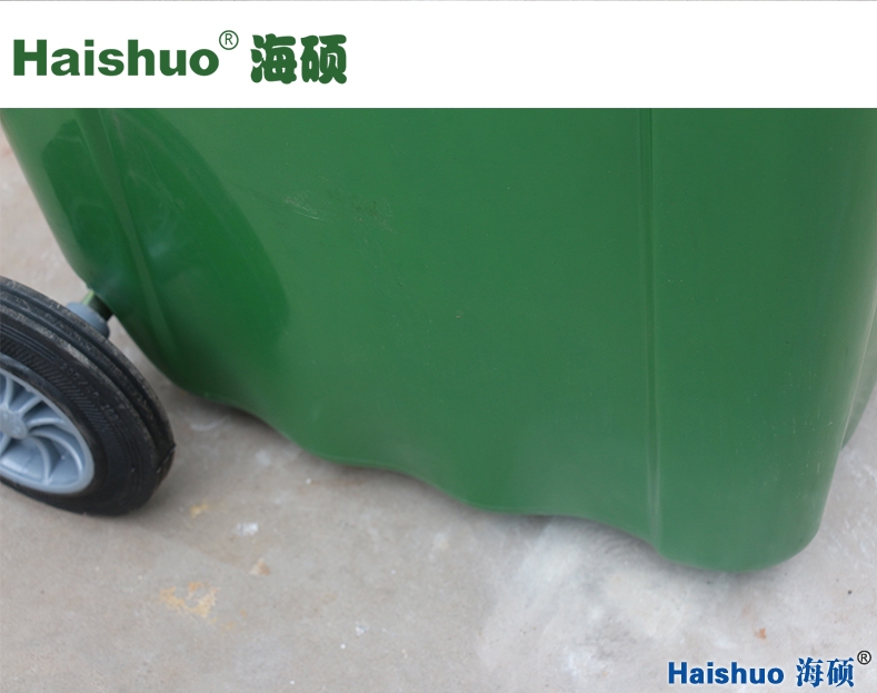 海碩HS-240L Y-2加厚型環衛垃圾桶 詳細說明:海碩HS-240L Y-2加厚型環衛垃圾桶,采用全新高密度聚乙烯HDPE磨具壓制成型,可與專用垃圾收集車配套使用。1、桶身沿口加強筋的設計布局,使此款垃圾桶比普通垃圾桶承重能力更強大。2、海碩家的桶身前后承力部分有豎向加強筋,底部同樣加厚加強。3、本產品采用全新高密度聚乙烯,使垃圾桶耐老化,抗沖擊力有了更大的提升。