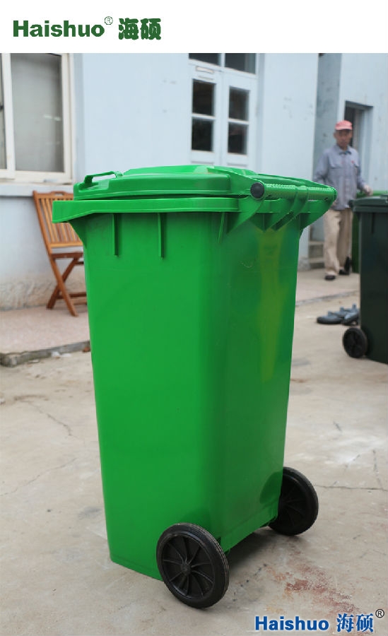 青島垃圾桶,青島海碩 HS-120L-A-1環(huán)衛(wèi)垃圾桶,采用加厚型材料,使桶身耐磨性大幅度提高