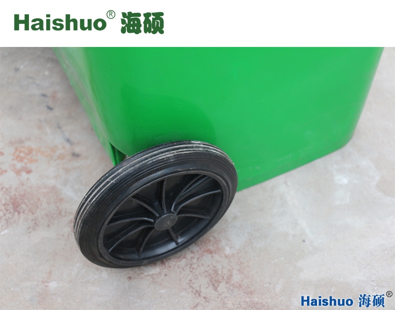 青島海碩 HS-120L-A-1環(huán)衛(wèi)垃圾桶,輪子采用高承載力耐磨靜音輪,使用壽命超長(zhǎng)。