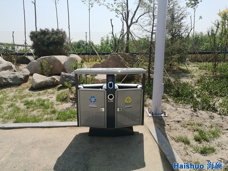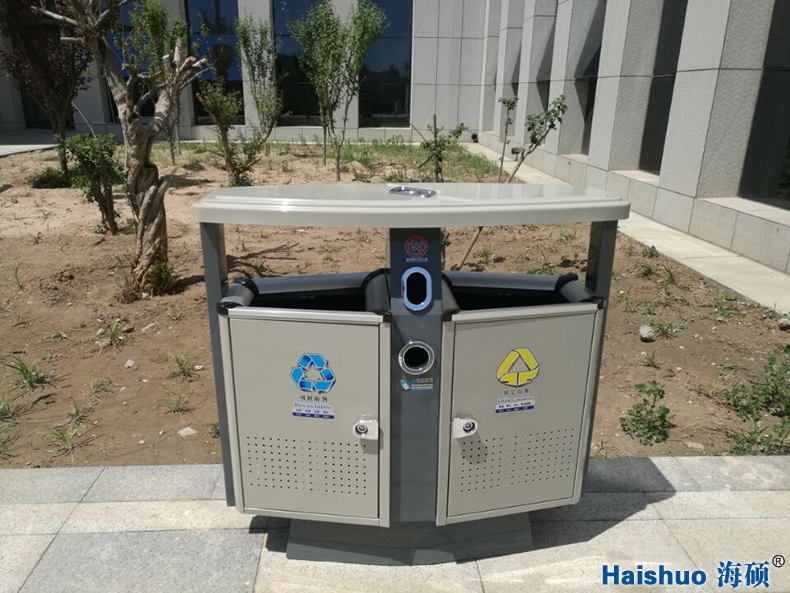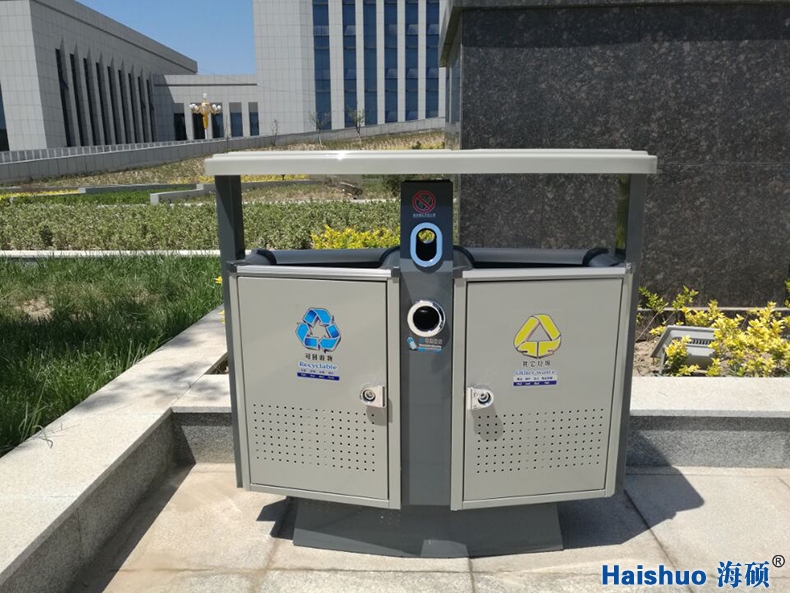 青島海碩戶外環保分類果皮箱HS-02,與普通垃圾桶比較而言,增加了桶身的強度,使之經久耐用,并且美觀好看