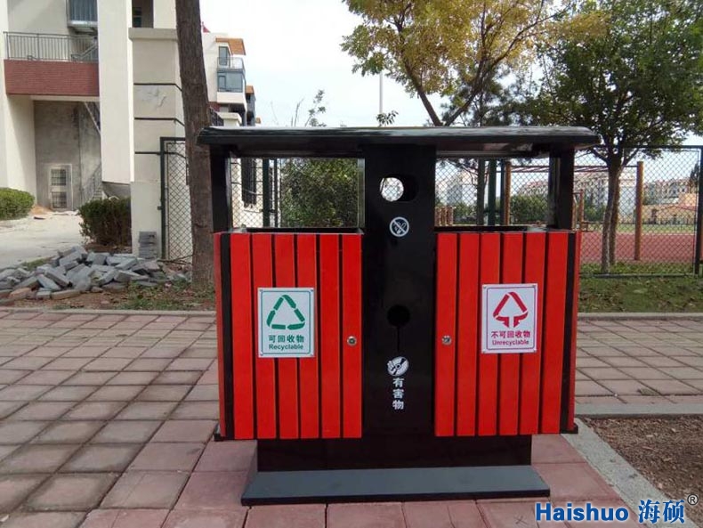產(chǎn)品名稱:鋼木戶外垃圾箱HS-325、青島環(huán)保垃圾桶、戶外分類垃圾箱、青島垃圾桶廠家