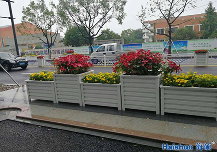青島海碩環(huán)保設(shè)備有限公司專業(yè)支持定制各種戶外PVC花箱,鋁合金花箱,景觀木質(zhì)花箱等,