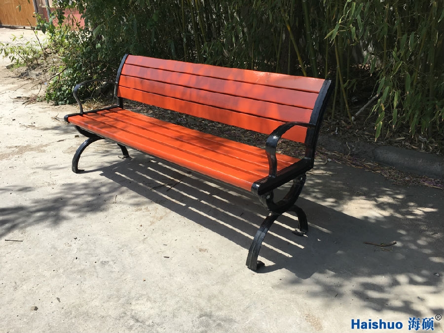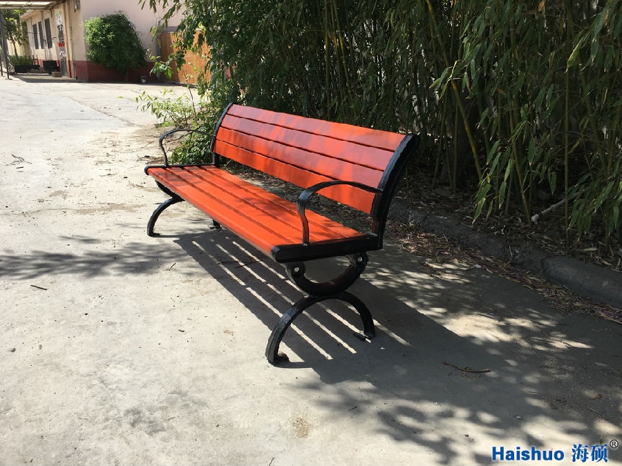 海碩戶外休閑椅選材優質柳桉木,特殊工藝不暴漆,質保五年。