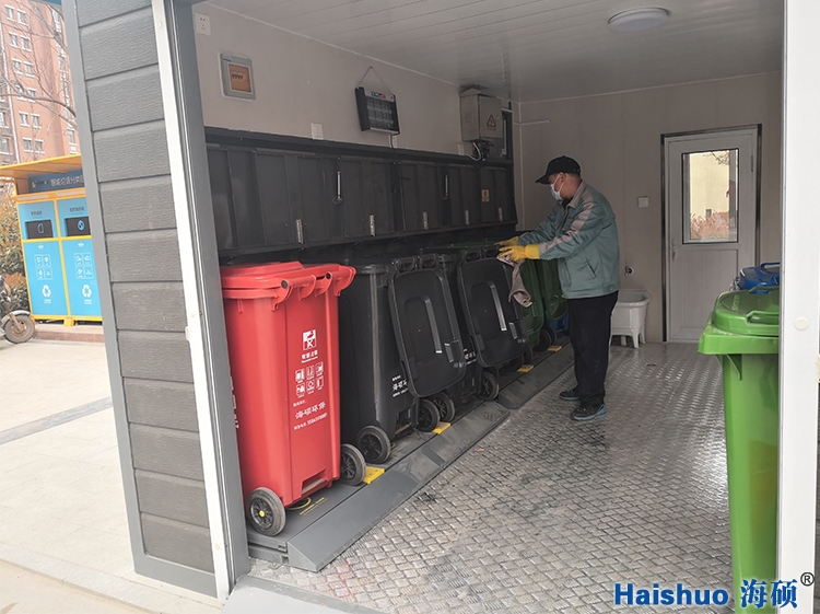 垃圾分類智能3.0模式——由海碩環保研制的智能生活垃圾密閉收集站亮相城陽社區。