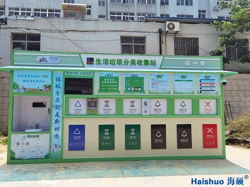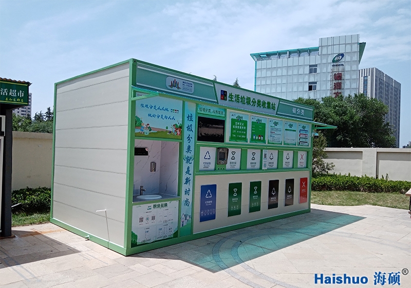 【主要功能】:垃圾稱重功能、線上APP積分兌換、多媒體宣傳服務、投放后洗手清潔、防雨、照明、監控還具有殺菌、除蟲、除臭功能等。
