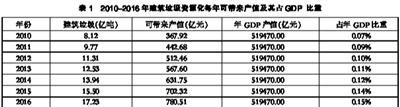 根據(jù)建筑垃圾資源化產(chǎn)業(yè)技術(shù)創(chuàng)新戰(zhàn)略聯(lián)盟的相關(guān)數(shù)據(jù)顯示,2010年~2016年,我國建筑垃圾數(shù)量,可帶來產(chǎn)值,年GDP產(chǎn)量以及占年GDP比重如表1所示。