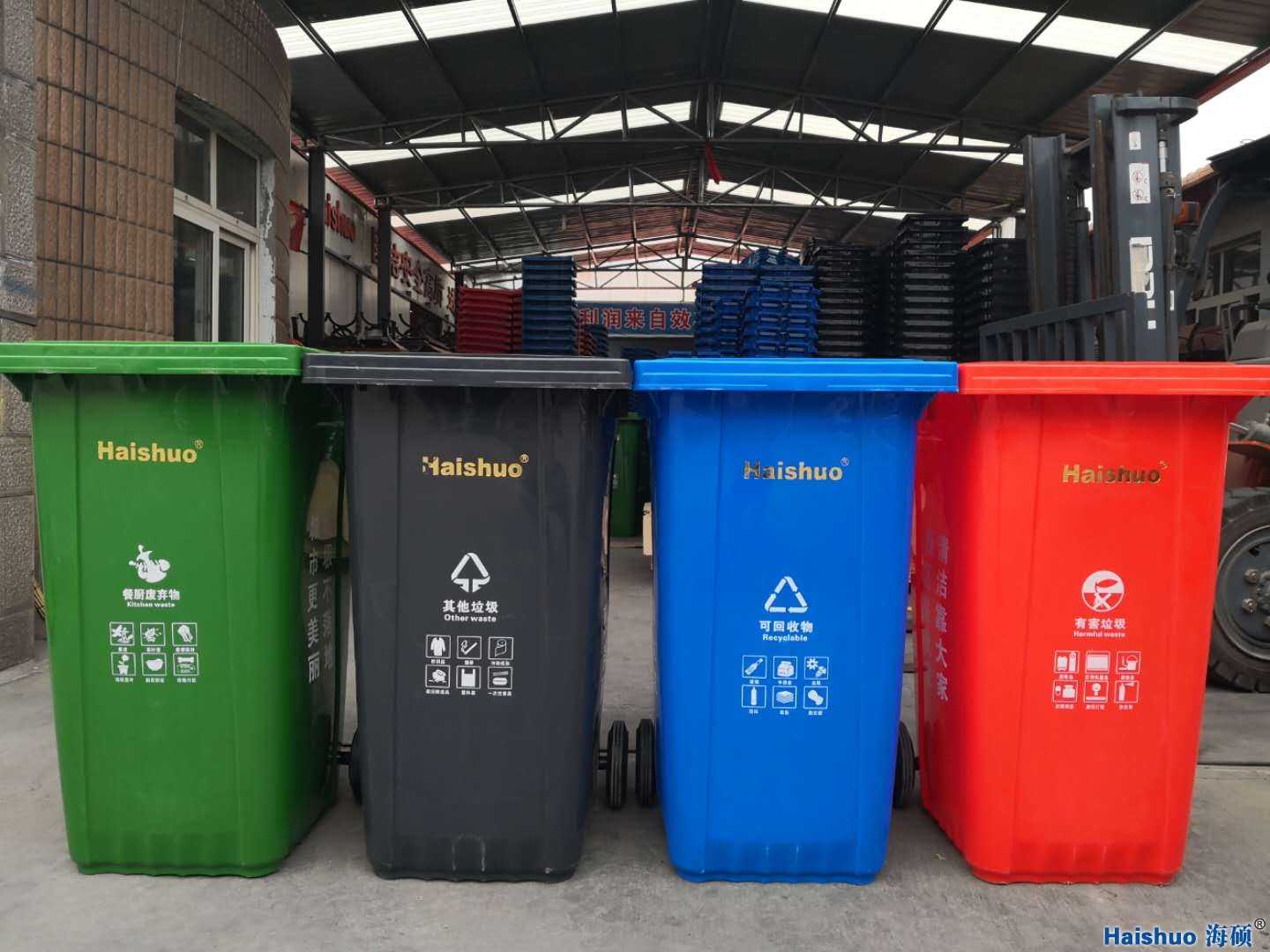 青島海碩環保設備有限公司垃圾分類專用桶在青島西海岸西區推廣使用