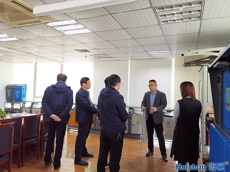 各位領(lǐng)導(dǎo)首先參觀了海碩環(huán)保垃圾分類展廳,了解了海碩環(huán)保目前主要的垃圾分類產(chǎn)品。同時(shí),工作人員詳細(xì)介紹了智能垃圾分類設(shè)備的各項(xiàng)功能和使用方法,并現(xiàn)場(chǎng)進(jìn)行了操作演示。