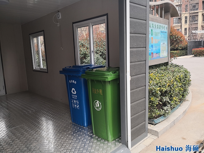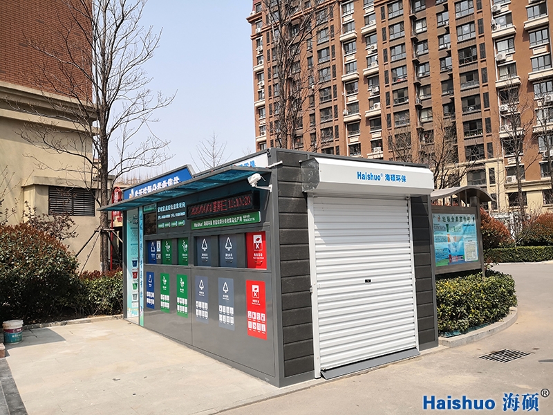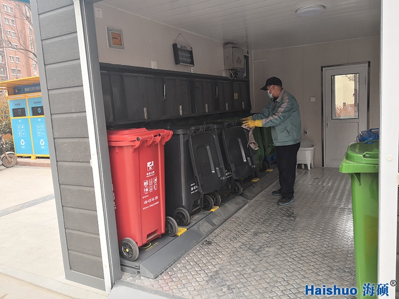這座生活垃圾分類密閉收集站不僅集分類垃圾稱重功能、線上APP積分兌換、多媒體宣傳服務、投放后洗手清潔、防雨、照明、監控等功能于一體,還具有殺菌、除蟲、除臭功能。投放使用后將重點解決原有的垃圾桶點過多導致的分類管理困難、分類效果差等問題。