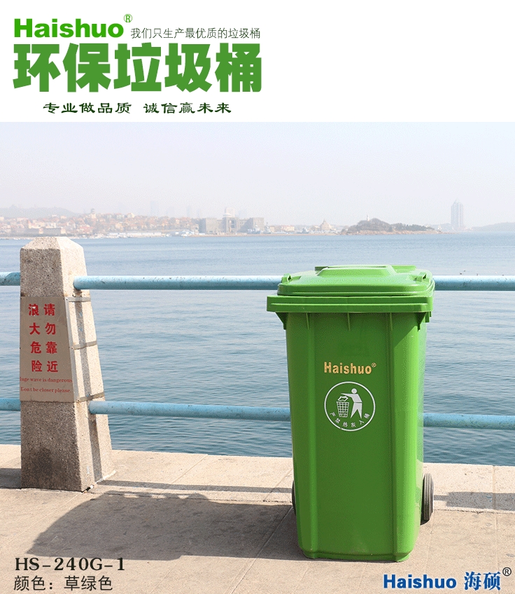 兩輪系列垃圾箱適用于城市、綠地、商業(yè)街、居住小區(qū)、廣場(chǎng)、道路等公共場(chǎng)所。可與垃圾壓縮車配套使用。容積為240L,材質(zhì)是高密度聚乙烯(HDEP)即市面上常說(shuō)的100%全新料,常規(guī)顏色有草綠色(市面暢銷款)